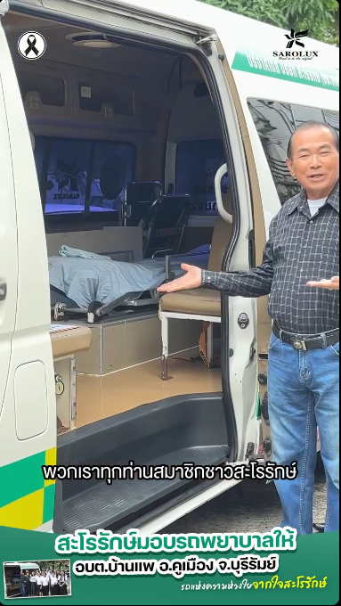 รถแห่งความห่วงใย จากใจสะโรรักษ์ มอบรถพยาบาลให้ อบต.บ้านแพ อ.คูเมือง จ.บุรีรัมย์ เพื่อช่วยดูแลชุมชนได้รวดเร็วและปลอดภัยยิ่งขึ้น