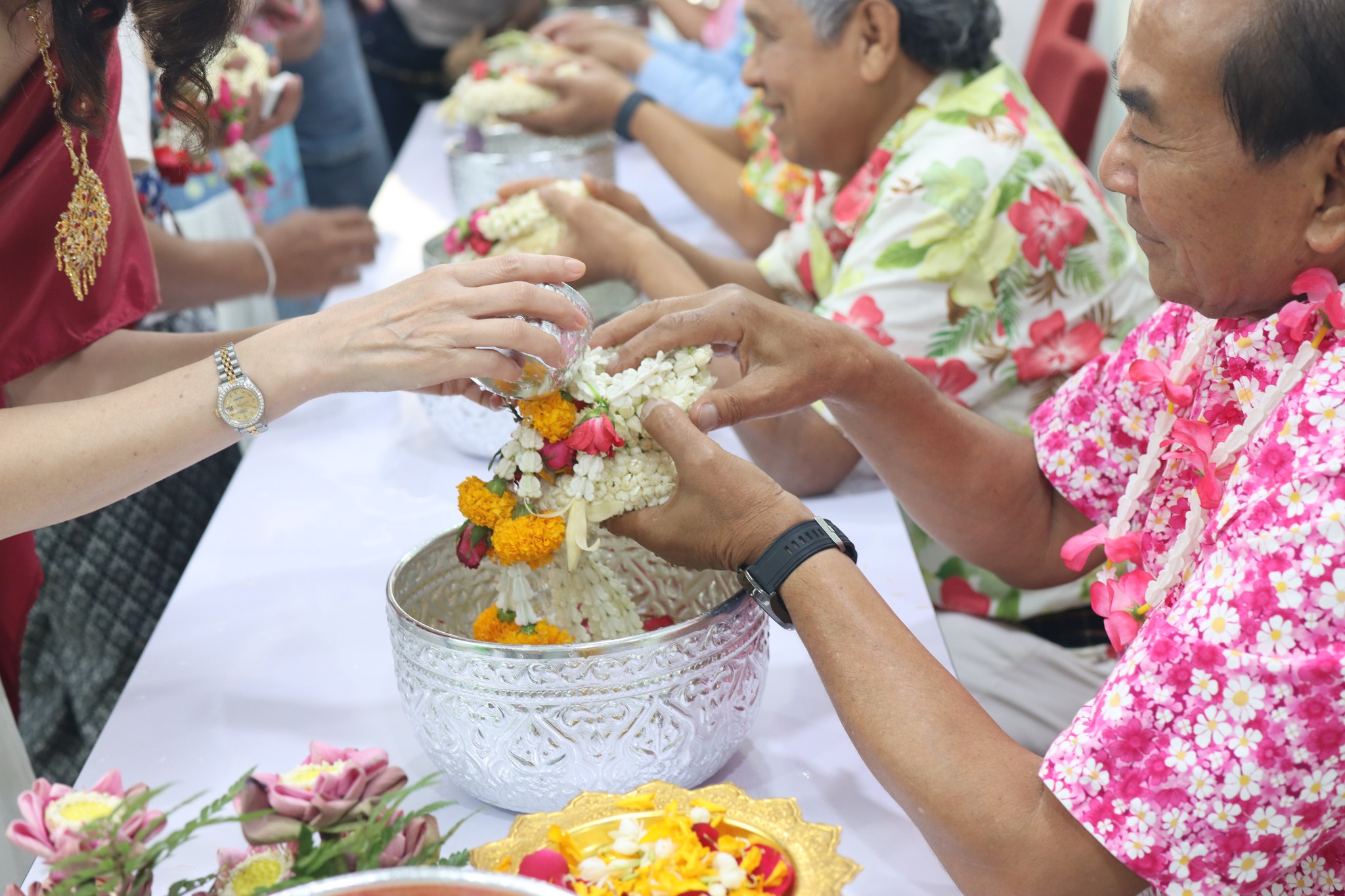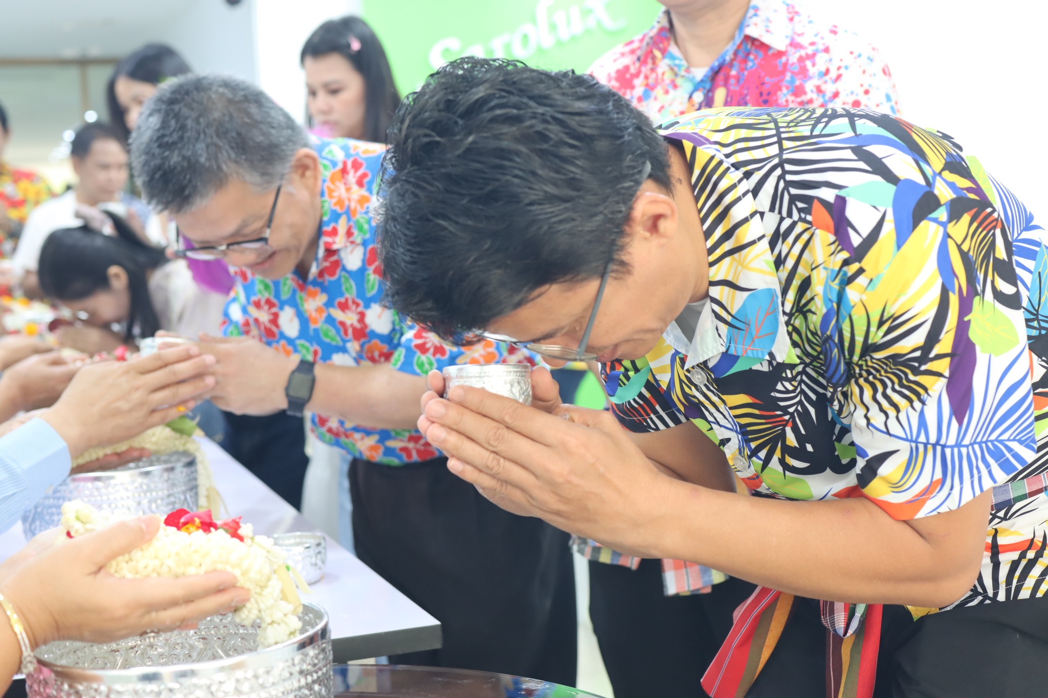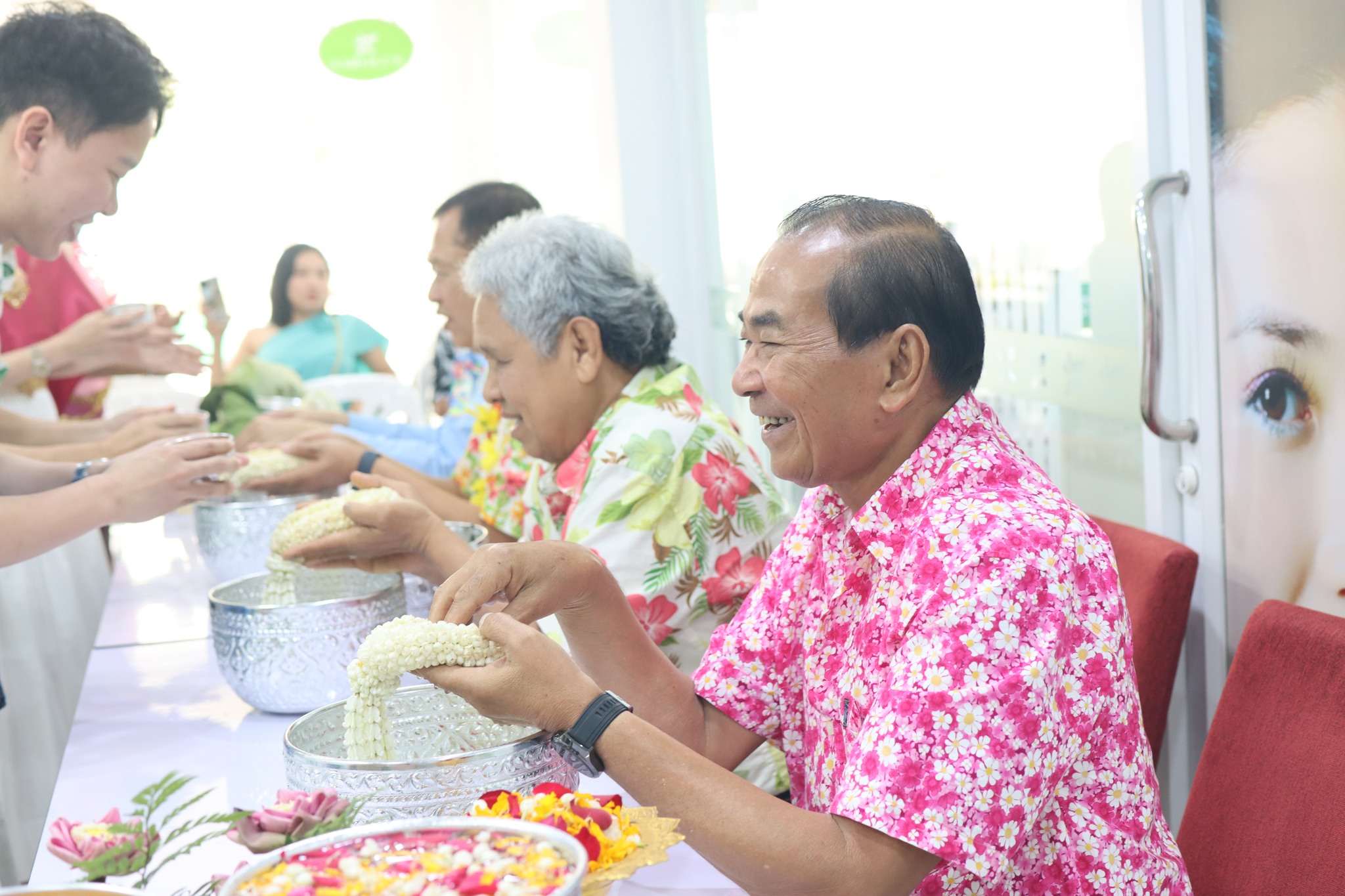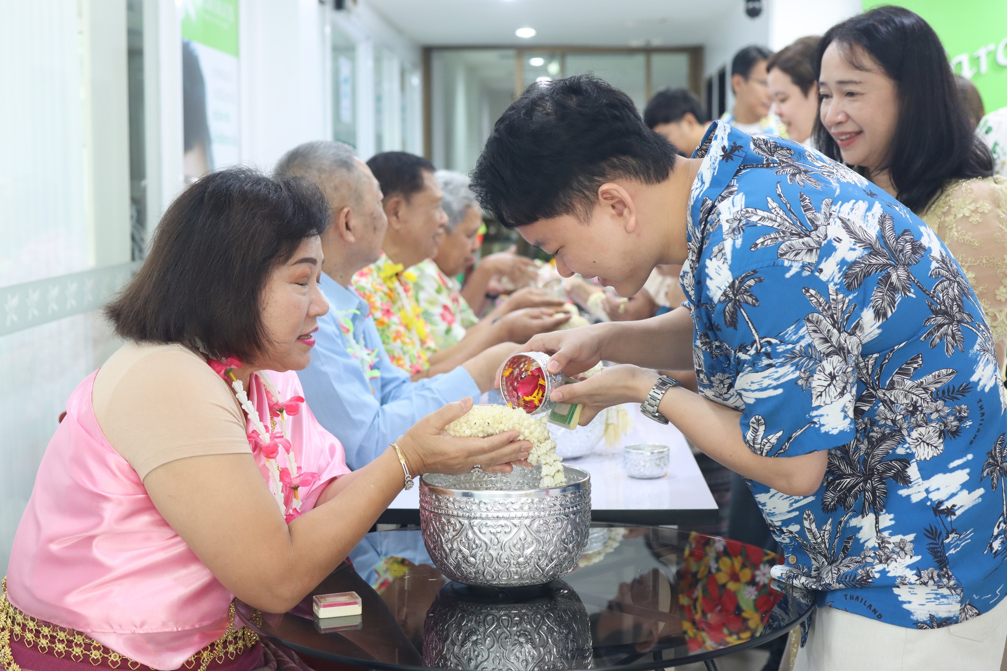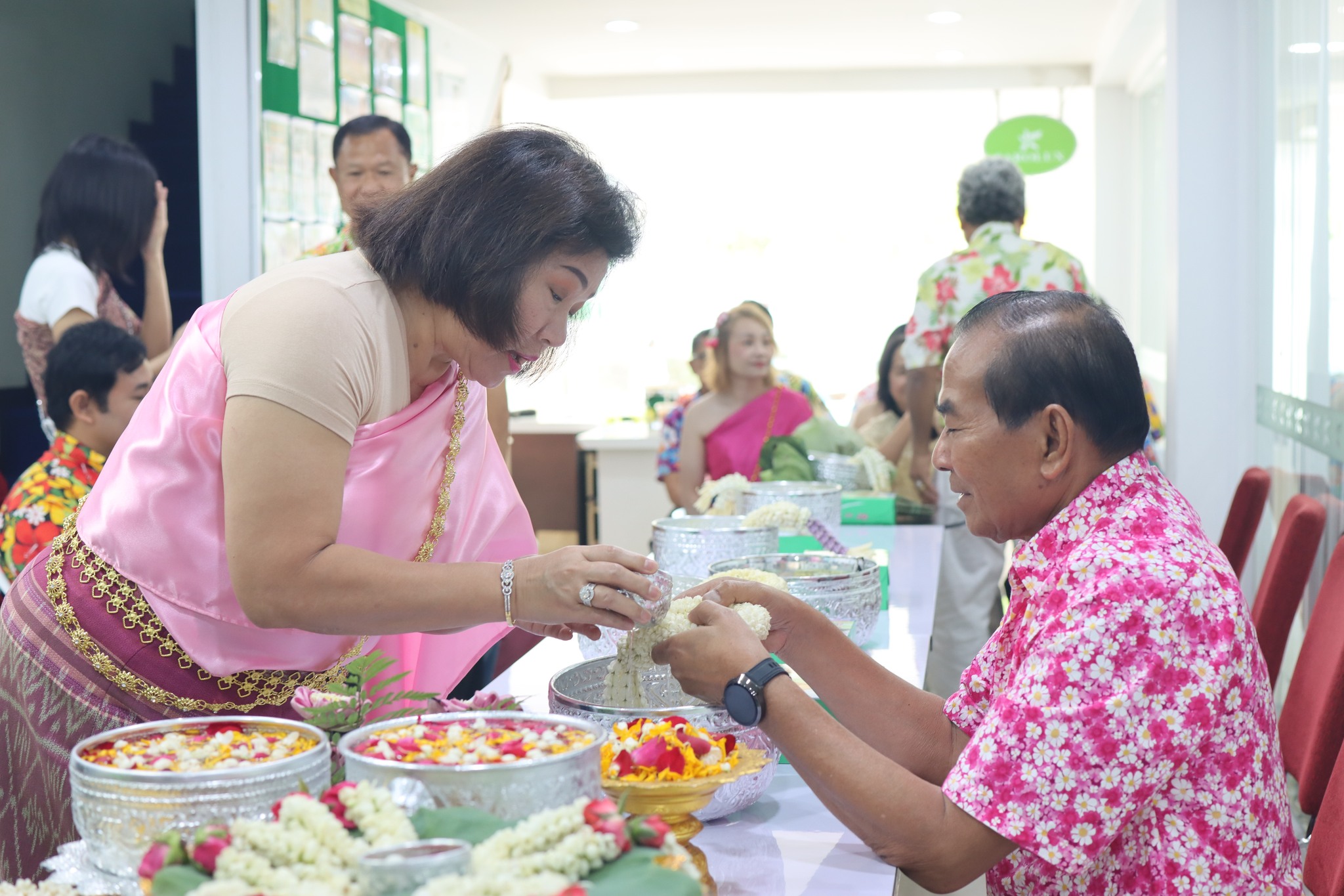 ผ่านพิธี รดน้ำดำหัวขอพรจากผู้ใหญ่ในองค์กร เพื่อความเป็นสิริมงคล และเสริมสร้างสายใยแห่งความผูกพัน