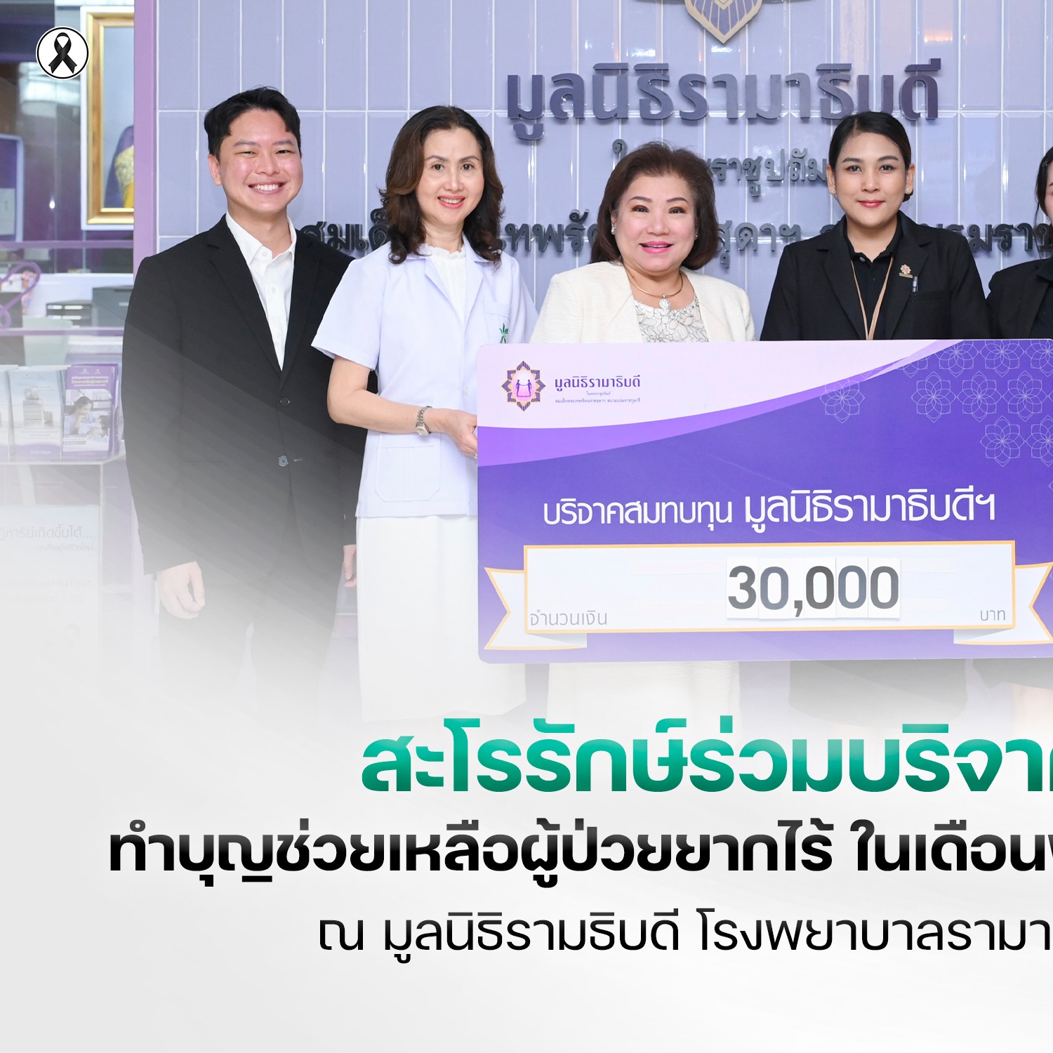 ขอร่วมเป็นส่วนหนึ่งในการมอบเงินบริจาคจำนวน 30,000 บาท เพื่อสมทบทุนช่วยเหลือค่ารักษาพยาบาลแก่ผู้ป่วยที่ขาดโอกาส